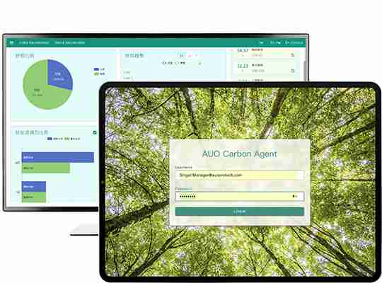 依循 ISO 国际标准建置出符合国际标准的全方位碳管理平台 (AUO Carbon Agent),,,,其中温室气体盘查模组可协助客户将组织、、、、产品与供应链的碳排放源数据,,,,透过系统内建的系数资料库自动计算出碳排量,,提升整体盘查作业的效率,,并以此拟定长期减碳策略,,,达到低碳转型、、、净零碳排的目标。。